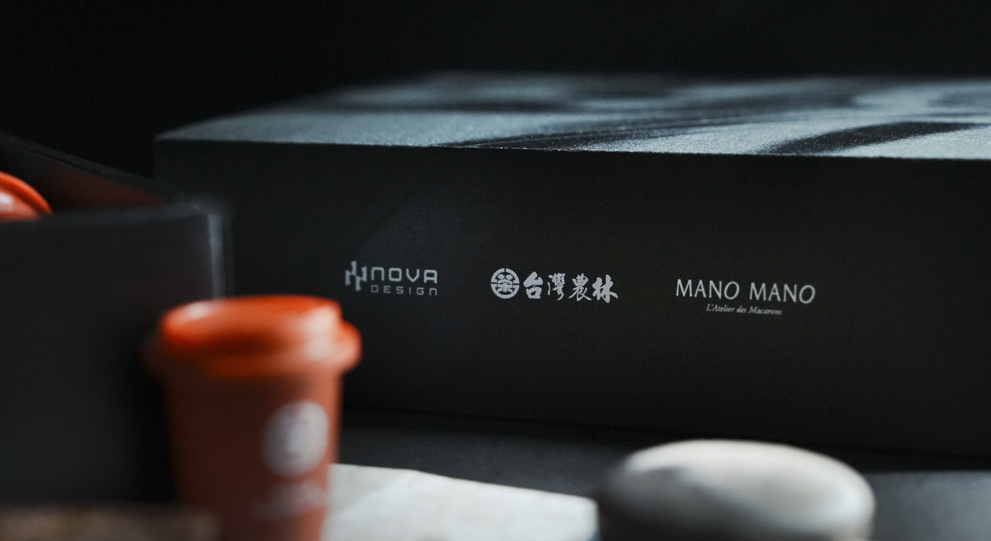 「Fashion Begins With Design」高級訂製禮盒內,台灣農林日月老茶廠的「紅玉紅茶凍乾晶茶粉」,以台茶18號獨特茶葉香氣為基底,結合現代生活型態與當代工藝,在百分百保留口感層次與韻味的挑戰之下,獨家製成能快速溶解的紅茶茶粉。而源自新竹、享譽國際的MANO MANO,則以精緻的渲染工藝在法式馬卡龍中,展現時裝的灰階色彩之美,讓甜點成為禮盒設計中不可忽視的亮點。NOVA DESIGN 設計團隊在這次的合作中,完美地整合品牌的期待與渴望,以設計能量讓體驗成為主角,成就一場風味與風格的精彩展演。